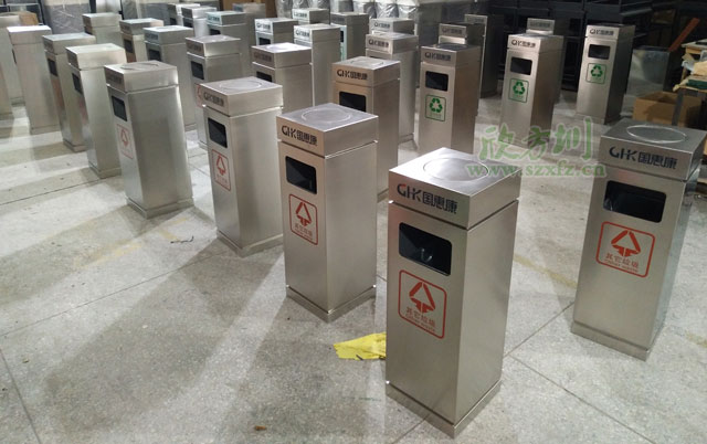 這批投放深圳石巖的C516商場(chǎng)不銹鋼垃圾桶尺寸規(guī)格為300*300*870mm,采用1.0mm厚的優(yōu)質(zhì)201不銹鋼板材經(jīng)激光切割剪板下料,數(shù)控折彎各部件,由多年經(jīng)驗(yàn)的鈑金師傅焊接焊點(diǎn)平滑美觀,打磨拋光等鈑金工藝制作而成。深圳石巖商場(chǎng)室內(nèi)不銹鋼垃圾桶邊角圓弧設(shè)計(jì)有效防止顧客撞擊,表面打磨拋光在使用過(guò)程中不傷手。桶頂部分翻蓋投口設(shè)計(jì),桶身開(kāi)口垃圾投放,垃圾多方位投放更便捷,絲印商場(chǎng)標(biāo)識(shí)及垃圾分類(lèi)標(biāo)識(shí)。