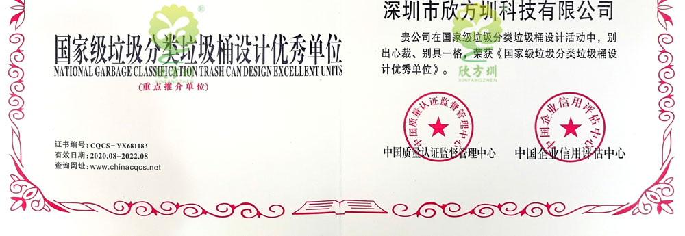 欣方圳獲得國家級垃圾分類垃圾桶設(shè)計(jì)優(yōu)秀單位,知識產(chǎn)權(quán)管理體系認(rèn)證,信息安全管理體系認(rèn)證,物聯(lián)網(wǎng)高新技術(shù)垃圾桶系統(tǒng)計(jì)算機(jī)軟件著作權(quán):基于物聯(lián)網(wǎng)技術(shù)的垃圾分類處理設(shè)備控制系統(tǒng)軟件、遠(yuǎn)程監(jiān)測系統(tǒng)軟件、環(huán)境監(jiān)測系統(tǒng)、智能管理系統(tǒng)平臺軟件