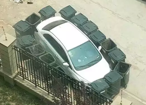 據(jù)介紹,停車(chē)處是放置小區(qū)垃圾桶的位置,私家車(chē)在此停放時(shí)垃圾桶較少,而等其他垃圾桶運(yùn)來(lái)時(shí)只得放在路邊,小區(qū)保潔人員多次撥打車(chē)主電話(huà)無(wú)人接聽(tīng)。當(dāng)天中午,垃圾清運(yùn)車(chē)倒完垃圾后,垃圾桶因無(wú)處可放擺在了私家車(chē)周?chē)?