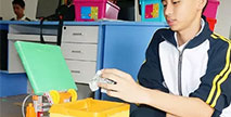 用卡紙包裝的方形桶裝外觀,樂(lè)高積木砌成的支架。這樣看似其貌不揚(yáng),甚至是簡(jiǎn)陋的垃圾桶,雙手靠近時(shí),卻能感應(yīng),并迅速自動(dòng)打開(kāi)垃圾桶蓋;當(dāng)垃圾桶內(nèi)水果皮、廚...