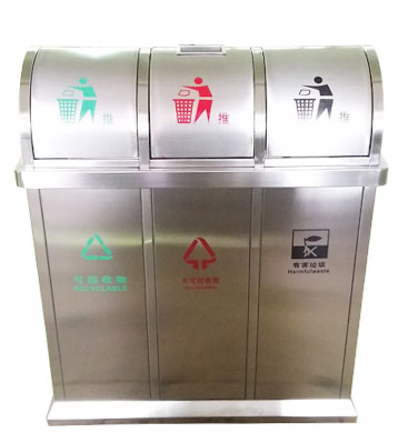 深圳新標(biāo)準(zhǔn)城中村街道社區(qū)不銹鋼五分類(lèi)垃圾桶由有害垃圾、玻璃、金塑紙(為金屬、塑料、紙張的簡(jiǎn)稱(chēng))、廚余垃圾、其他垃圾這5分類(lèi)不銹鋼垃圾桶組合而成。其中金塑紙、其他垃圾日常產(chǎn)生量較大,所以分類(lèi)收集容器也