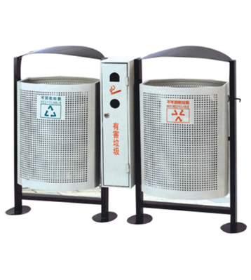 F93戶外鋼板三分類垃圾桶