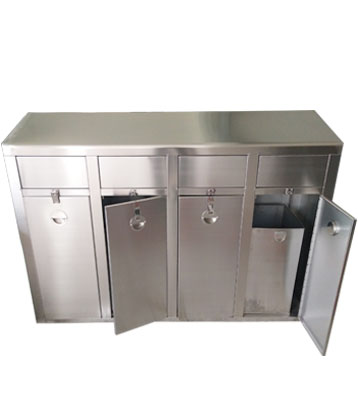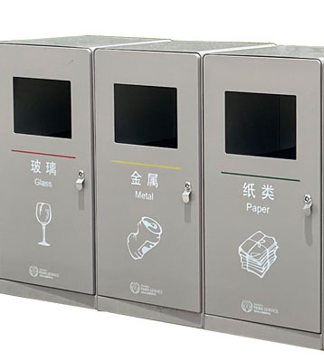 深圳新標準城中村街道社區(qū)不銹鋼五分類垃圾桶由有害垃圾、玻璃、金塑紙(為金屬、塑料、紙張的簡稱)、廚余垃圾、其他垃圾這5分類不銹鋼垃圾桶組合而成。其中金塑紙、其他垃圾日常產(chǎn)生量較大,所以分類收集容器也