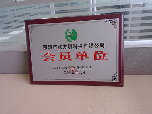 2013年9月,經(jīng)過深圳市綠色產(chǎn)業(yè)促進(jìn)會(huì)的審核批準(zhǔn),欣方圳科技榮獲“深圳市綠色產(chǎn)業(yè)促進(jìn)會(huì)會(huì)員單位”殊榮。