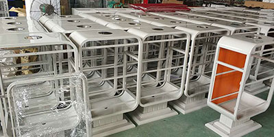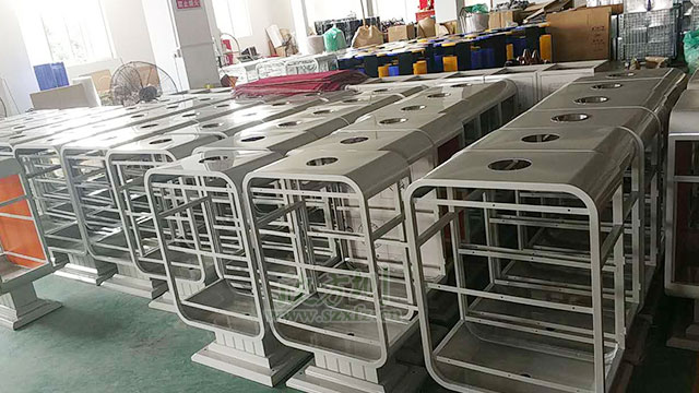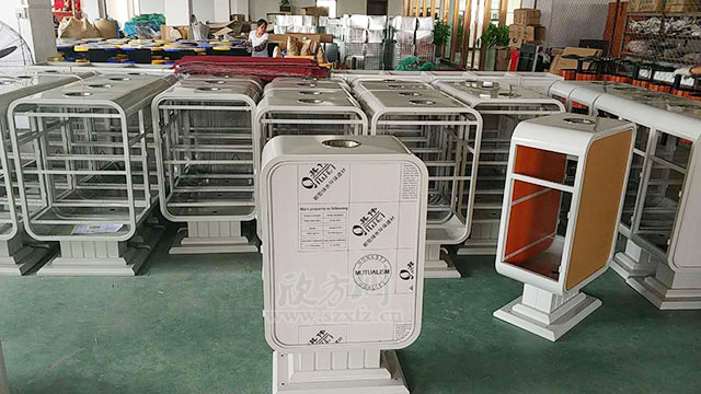 欣方圳廣告垃圾桶連接處精細(xì)打磨!