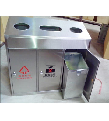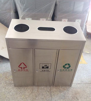 • 產(chǎn)品材質(zhì):三分類(lèi)不銹鋼垃圾桶采用201#,202#,304#優(yōu)質(zhì)不銹鋼材料模壓成型,堅(jiān)固耐用,不易破損;耐火安全,抗高低溫,適合各種惡劣氣候條件;金屬亮澤,高雅美觀,廣泛適用于各種場(chǎng)所;內(nèi)外表面光潔,減少垃圾殘留,易于清潔;配置鍍鋅板內(nèi)桶,便于垃圾清倒;