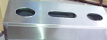 欣方圳三分類(lèi)不銹鋼垃圾桶,采用優(yōu)質(zhì)不銹鋼無(wú)縫焊接成型,邊角精細(xì)打磨,安全系數(shù)高。