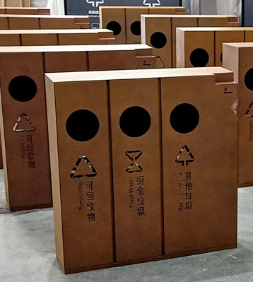 欣方圳酒店室內(nèi)鋼制三四分類垃圾桶批量生產(chǎn)圖