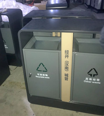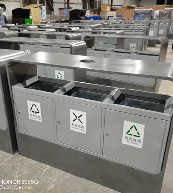欣方圳戶(hù)外鋼制分類(lèi)垃圾箱工廠(chǎng)批量生產(chǎn)圖