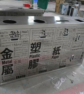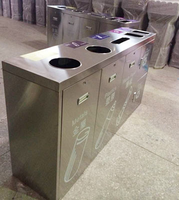 • 使用范圍:欣方圳不銹鋼五分類環(huán)?;厥障浔砻婀饣?、亮麗,是電梯口、寫字樓、學(xué)校、物業(yè)、賓館、酒店、機(jī)場、汽車站等擺放的首選。
