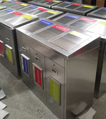 不銹鋼三分類垃圾回收箱工廠批量生產(chǎn)圖