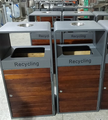 欣方圳戶外鋼木分類果皮箱批量生產(chǎn)圖