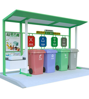 設(shè)有擋雨棚,可配備垃圾箱信息顯示屏、防水照明燈、廣告屏,進(jìn)行地面硬化。對社區(qū)玻金塑紙可回收物,其他垃圾,廚余垃圾,有害垃圾等生活垃圾定時(shí)定點(diǎn)投放收集.