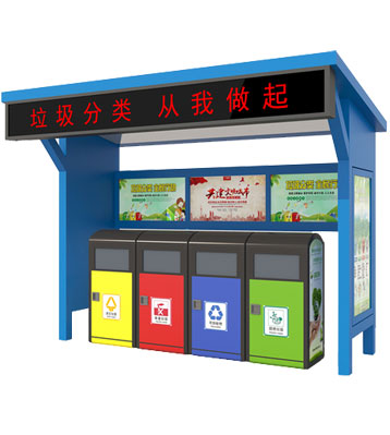 設(shè)有擋雨棚,可配備垃圾箱信息顯示屏、防水照明燈、廣告屏,進(jìn)行地面硬化。對(duì)社區(qū)玻金塑紙可回收物,其他垃圾,廚余垃圾,有害垃圾等生活垃圾定時(shí)定點(diǎn)投放收集.