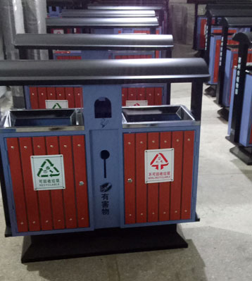 欣方圳戶外鋼木分類垃圾桶批量生產(chǎn)圖