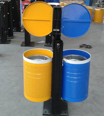 欣方圳戶外鋼板分類垃圾桶工廠批量生產(chǎn)圖